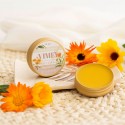 Aceite de girasol extra virgen macerado en pétalos de caléndula, manteca de karite, cera de abejas, vitamina E, aceite esencial de lavanda.