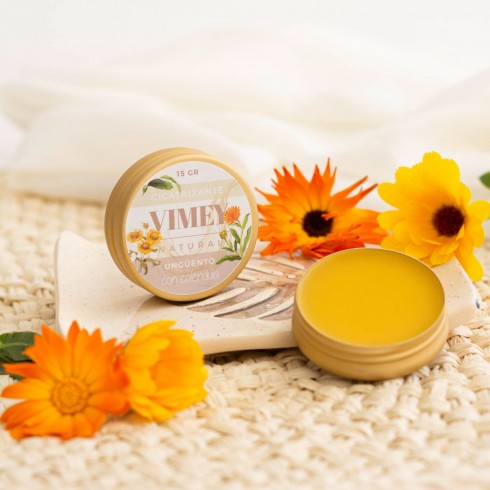 La caléndula posee un gran poder cicatrizante y antiséptico, además de regenerar la piel y producir colágeno, por lo que es muy recomendable para curar heridas, tratar cicatrices, pies y manos agrietadas, pieles quemadas o con acné, úlceras bucales y eccemas. La manteca de karite también calma la piel y alivia los problemas cutáneos.