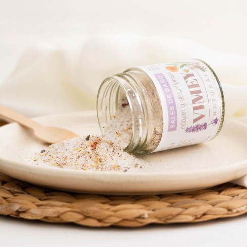 Sales de EPSON (Sulfato de magnesio alimenticio), naranja, lavanda, rosas y caléndulas.